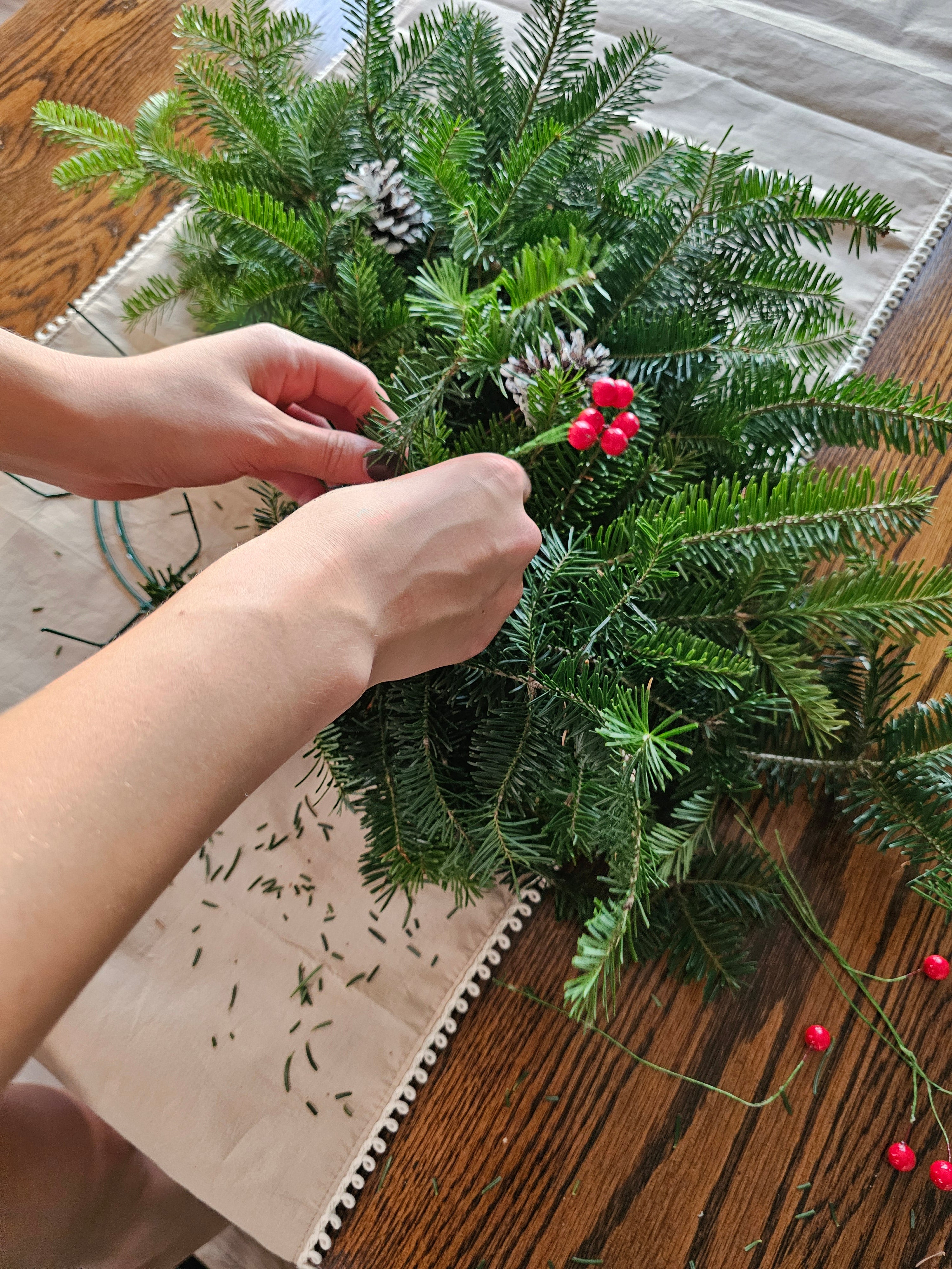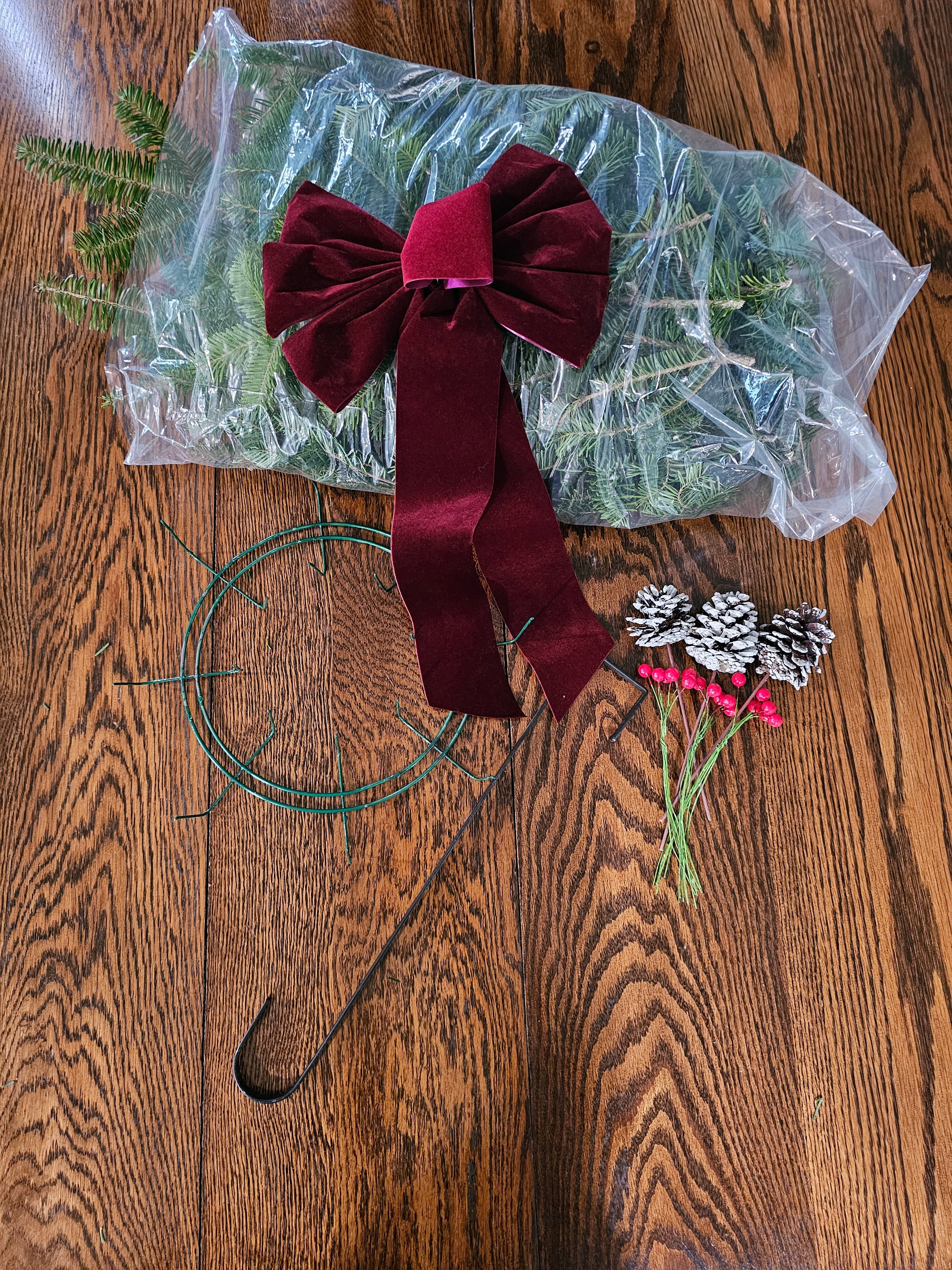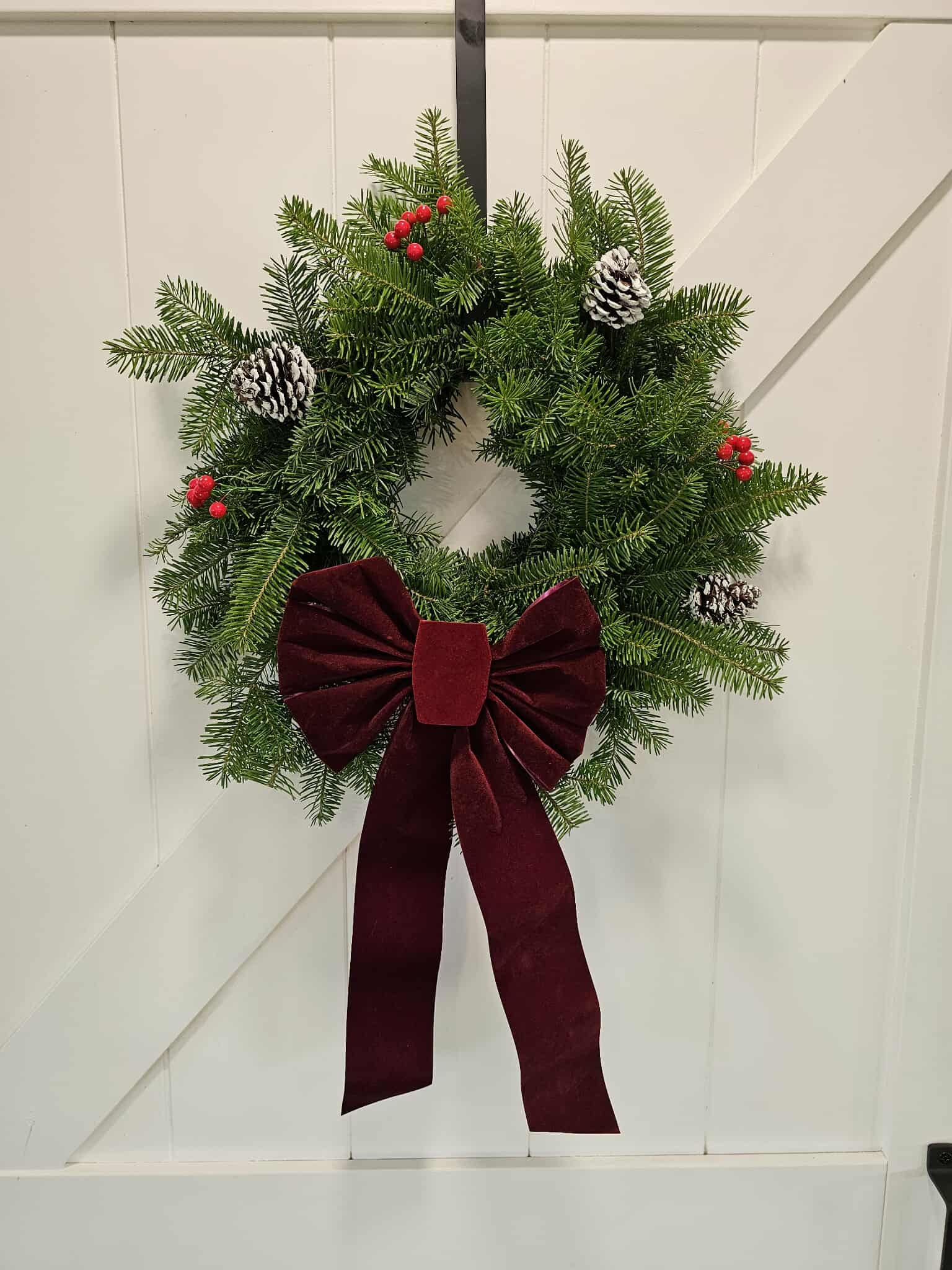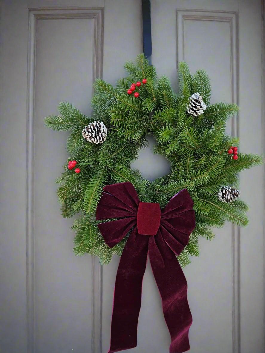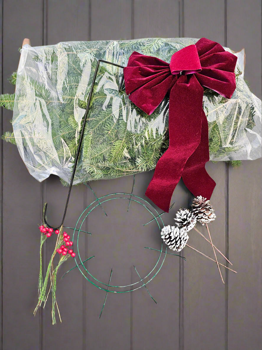 DIY 18" Christmas Wreath Kit – Fresh Balsam with Bow, Pinecones & Berries